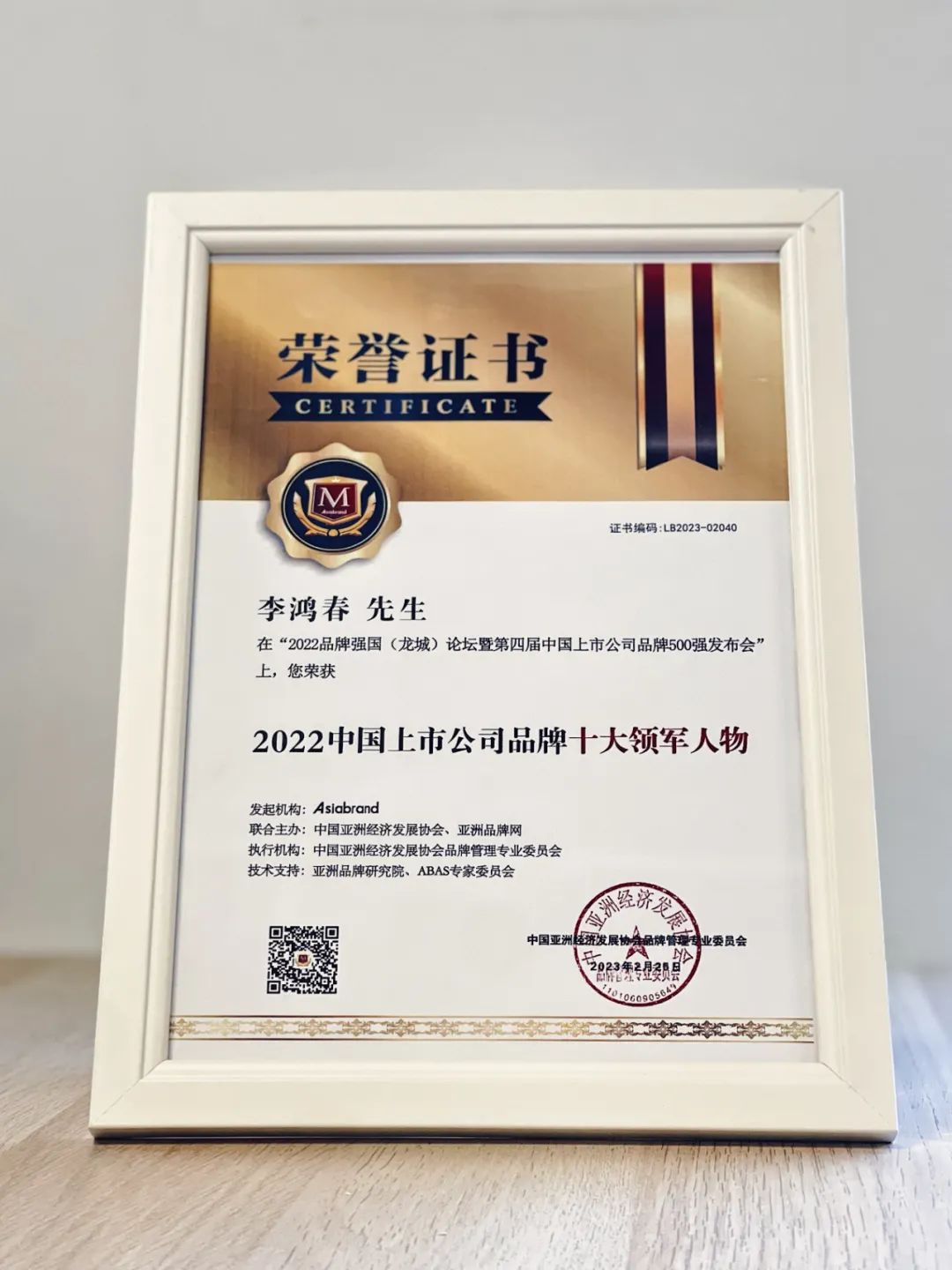 BB贝博艾弗森官网总裁李鸿春获“2022中国上市公司品牌十大领军人物”